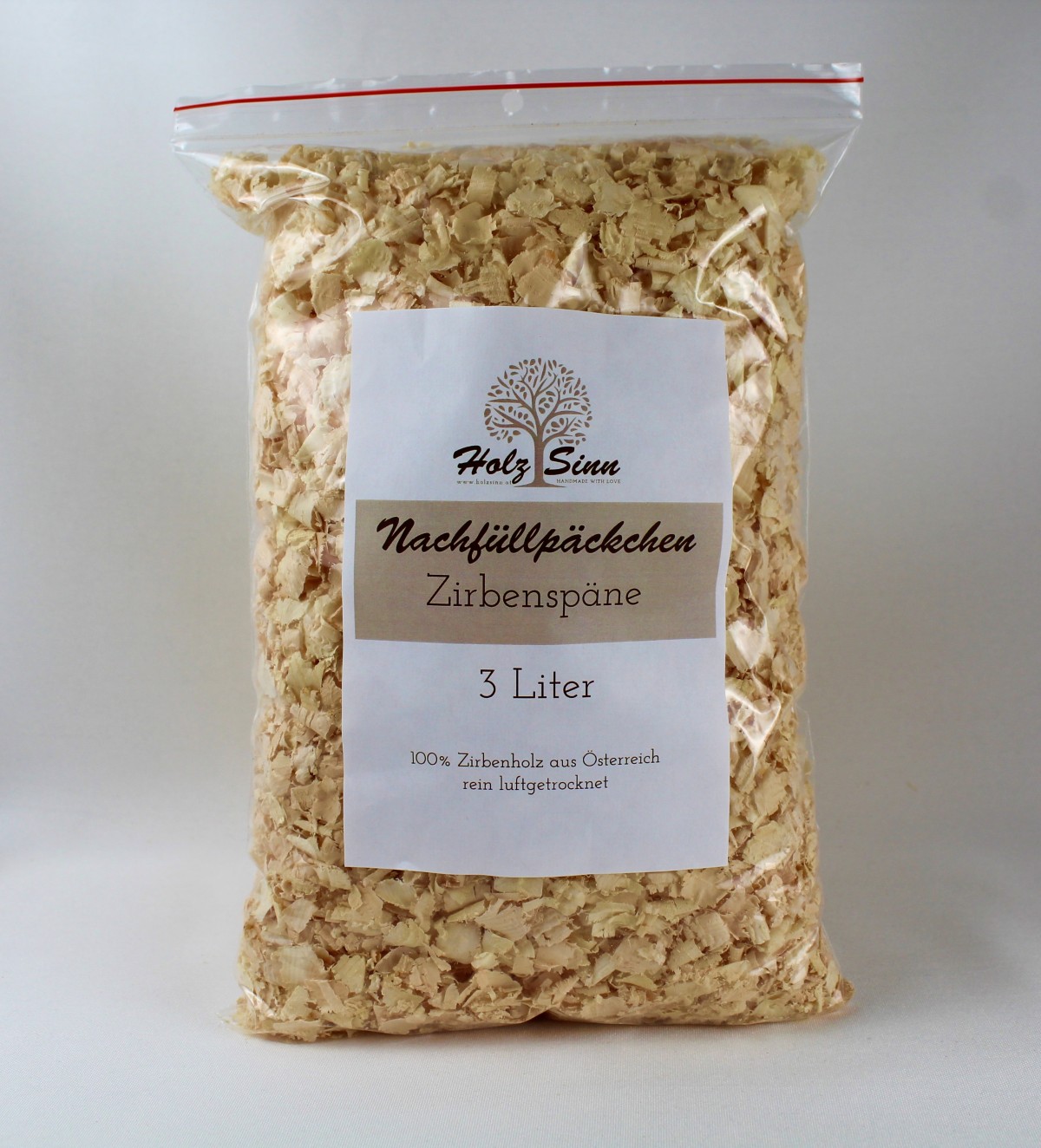 Die Nachfüllpackung mit duftenden Zirbenspänen bringt frischen Wind in deine Kissen, Säckchen oder in der Zirbenschale. Behalte dir durch die Späne den angenehmen Duft des heimischen Zirbenholzes.